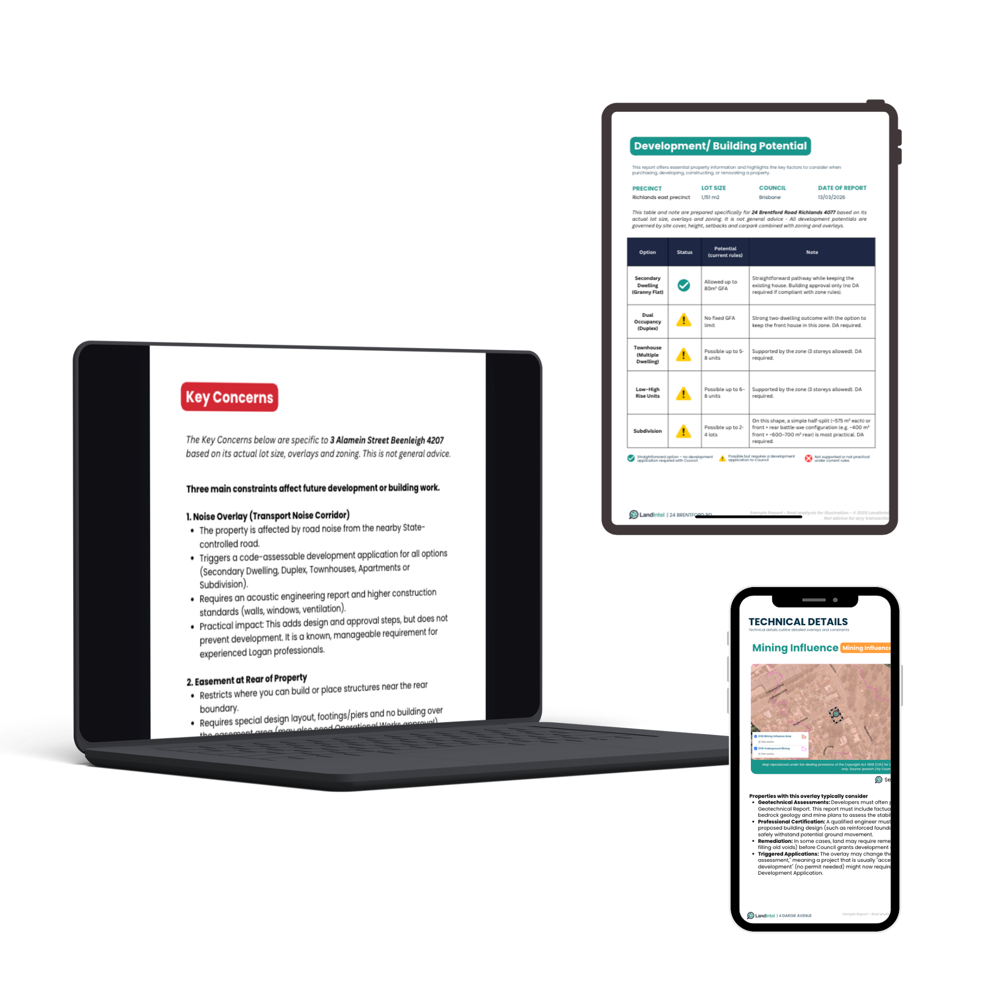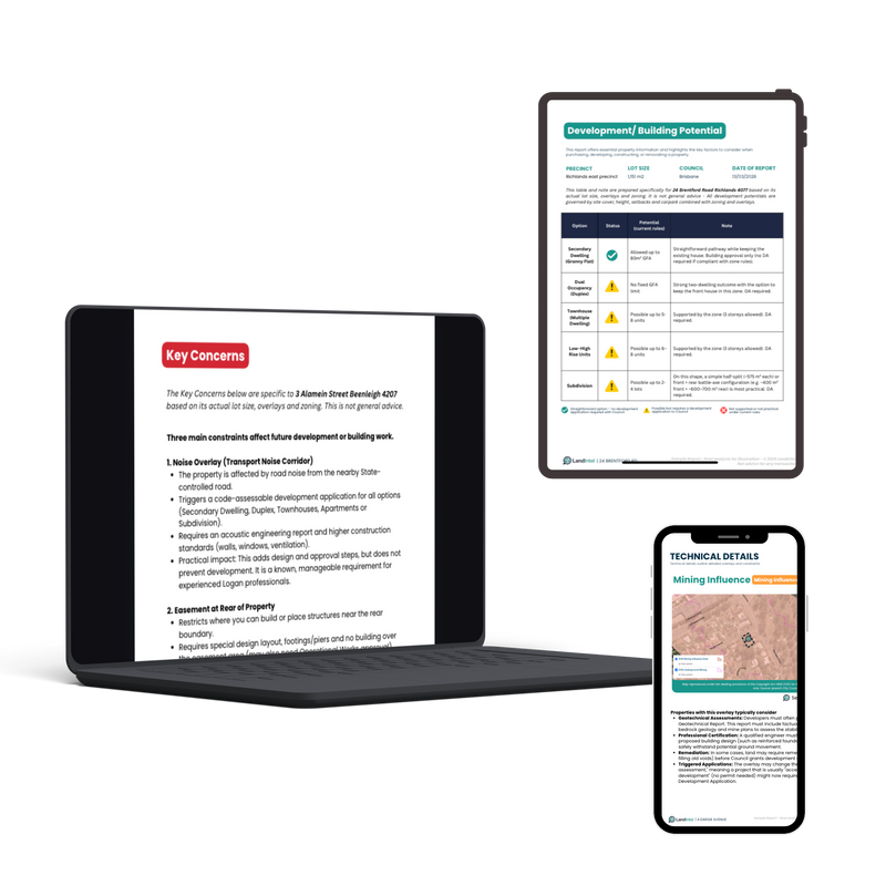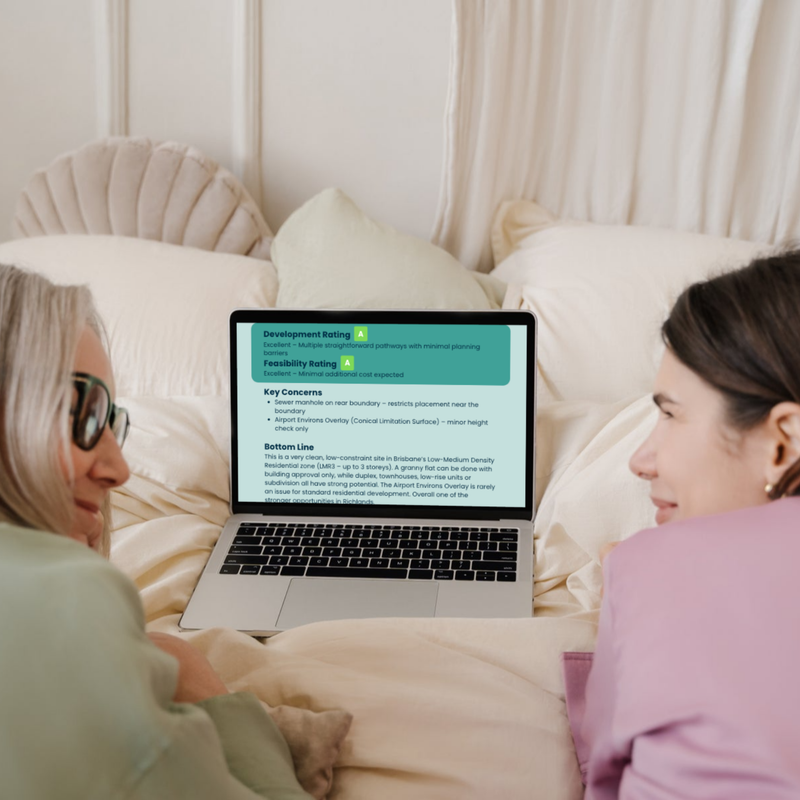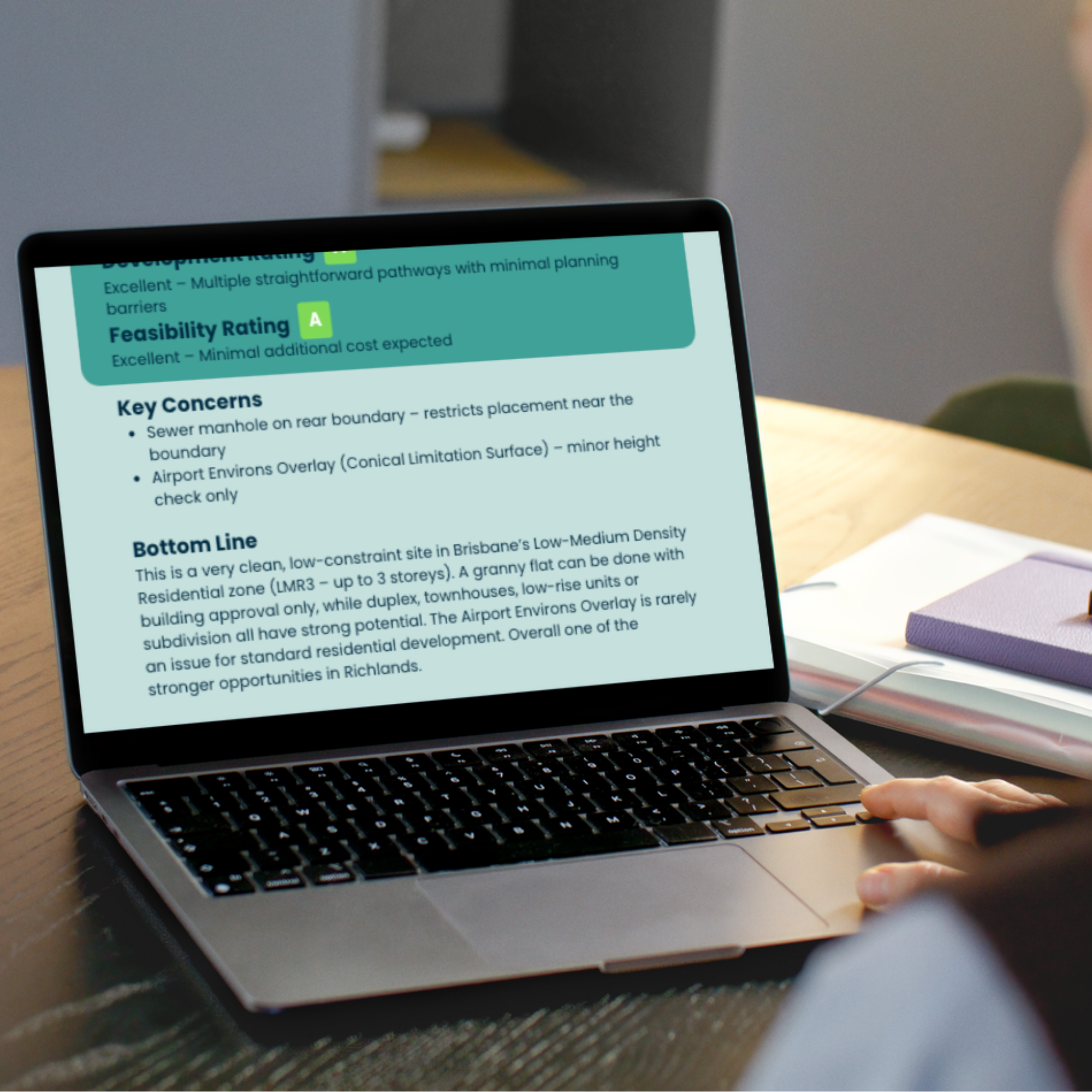 A higher Development Rating opens up more options (granny flat → duplex → townhouses → apartments or subdivision) with fewer planning hurdles. A lower rating tells you early that you may need to scale back expectations or get creative with design — saving you time and money before you engage professionals.